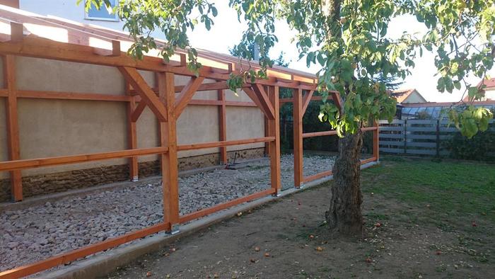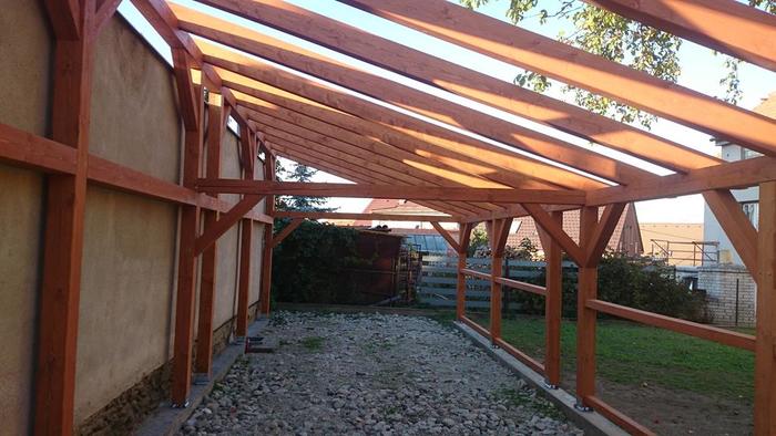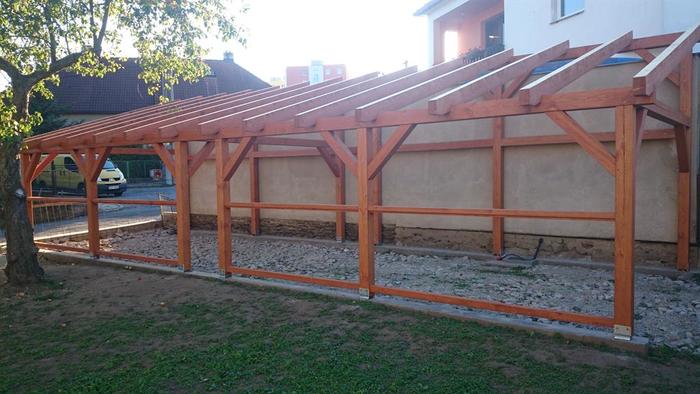 Posezení ke stěně vyrobené na našem dřevo obráběcím centru Hundegger.Jedná se o hoblovanou konstrukci z konstrukčního dřeva a pote natřenou tenkovrstvou barvou.