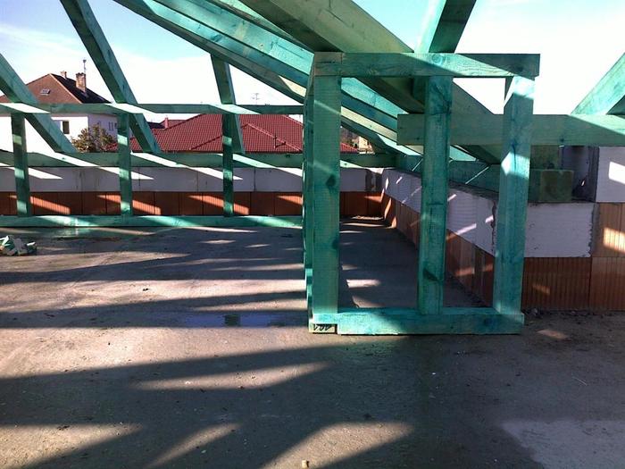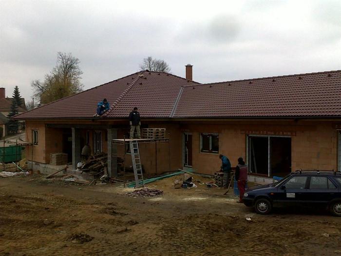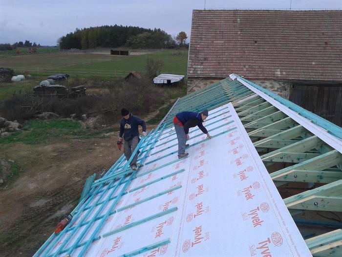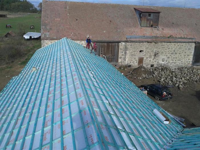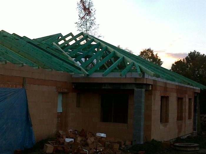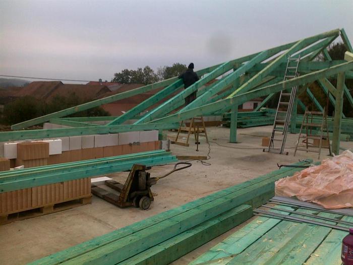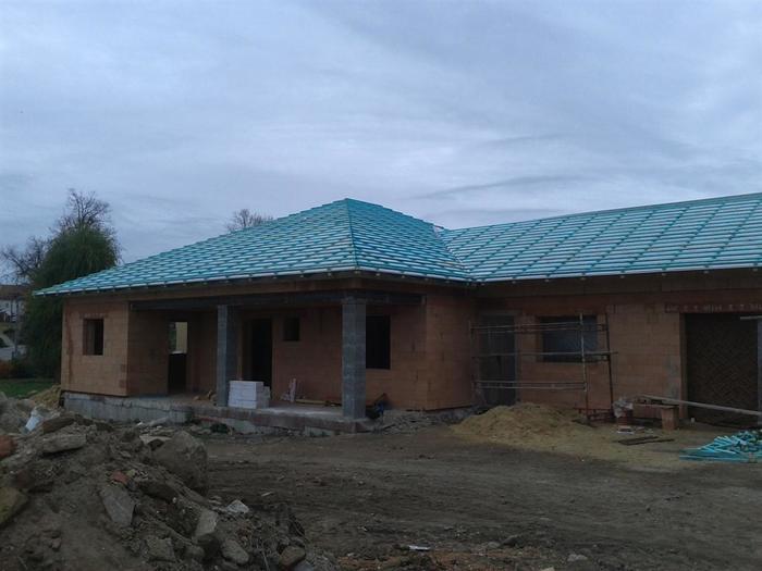 Kompletní výstavba střechy na klíč na rodinném domě v Ptáčově u Třebíče. Tesařské práce proběhly v první fázi výrobou trámů,krovů, latí a dalších dřevěných částí v našem CNC řízeném dřevoobráběcím centru ve Stříteži u Třebíče. Druhá část, montáž dřevěné konstrukce střechy včetně položení izolací proběhla jin přímo na rodinném domě. Poté následovala pokládka střešní krytiny a klempířské práce se zabudováním všech nutných klempířských prvků do pláště střechy.